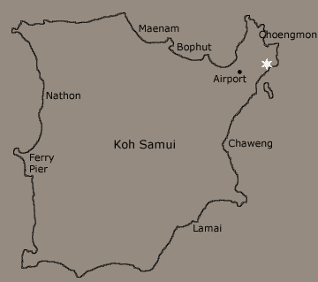 The villa is located on a hillside, about 5 minutes drive from Chaweng, 3 minutes from Choeng