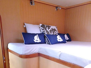 is a 32ft Arbalist 980 motor-catamaran, featuring comfortable lounge